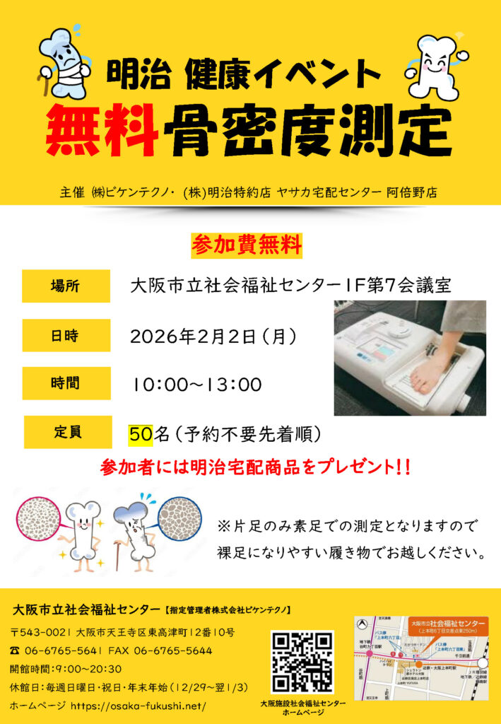令和8年2月2日(月)10:00~13:00の限定開催で、骨密度測定イベントを実施いたします。